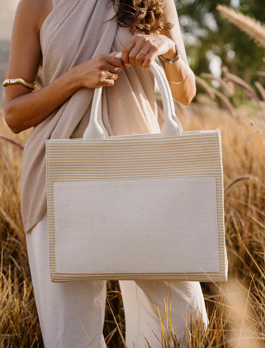 Kaya Clutch- Striped Beige